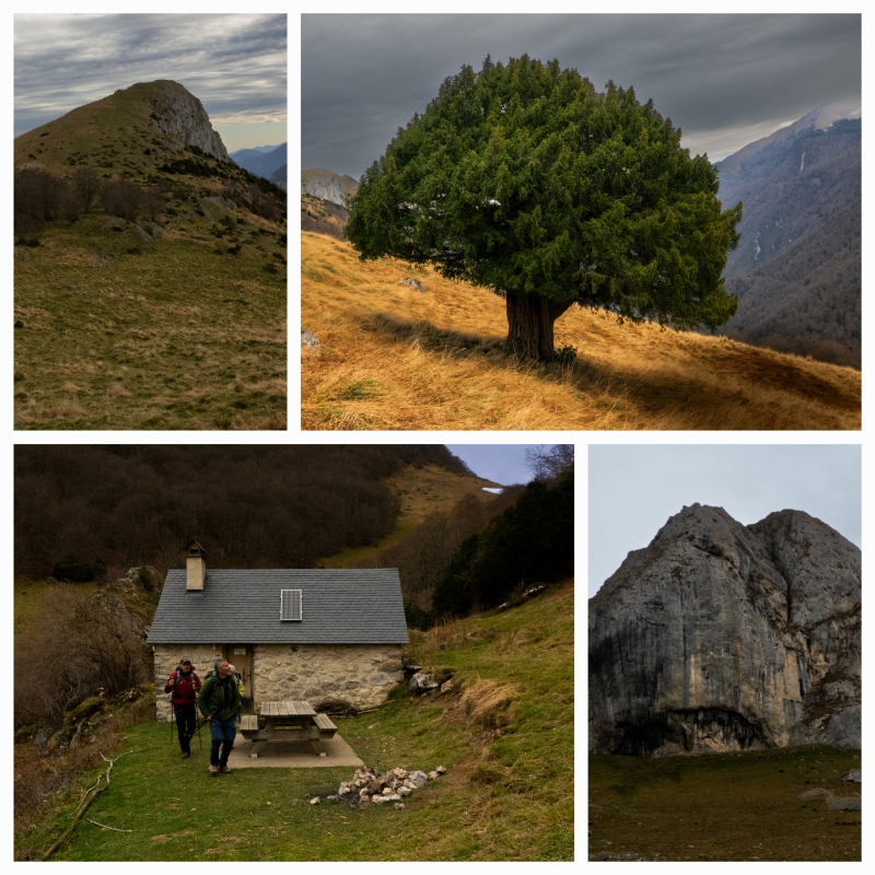 La météo était moyenne, mais nous n’avons eu ni froid, ni pluie. Nous avons évolué à travers un paysage grandiose avec vue sur les sommets enneigés du Luchonnais. Au détour de nos chemins nous avons rencontré quelques gentianes printanières, un if remarquable tout proche de la belle cabane des Mails, un troupeau de chèvres intrépides et 2 moutons oubliés par leur berger sous le casque.